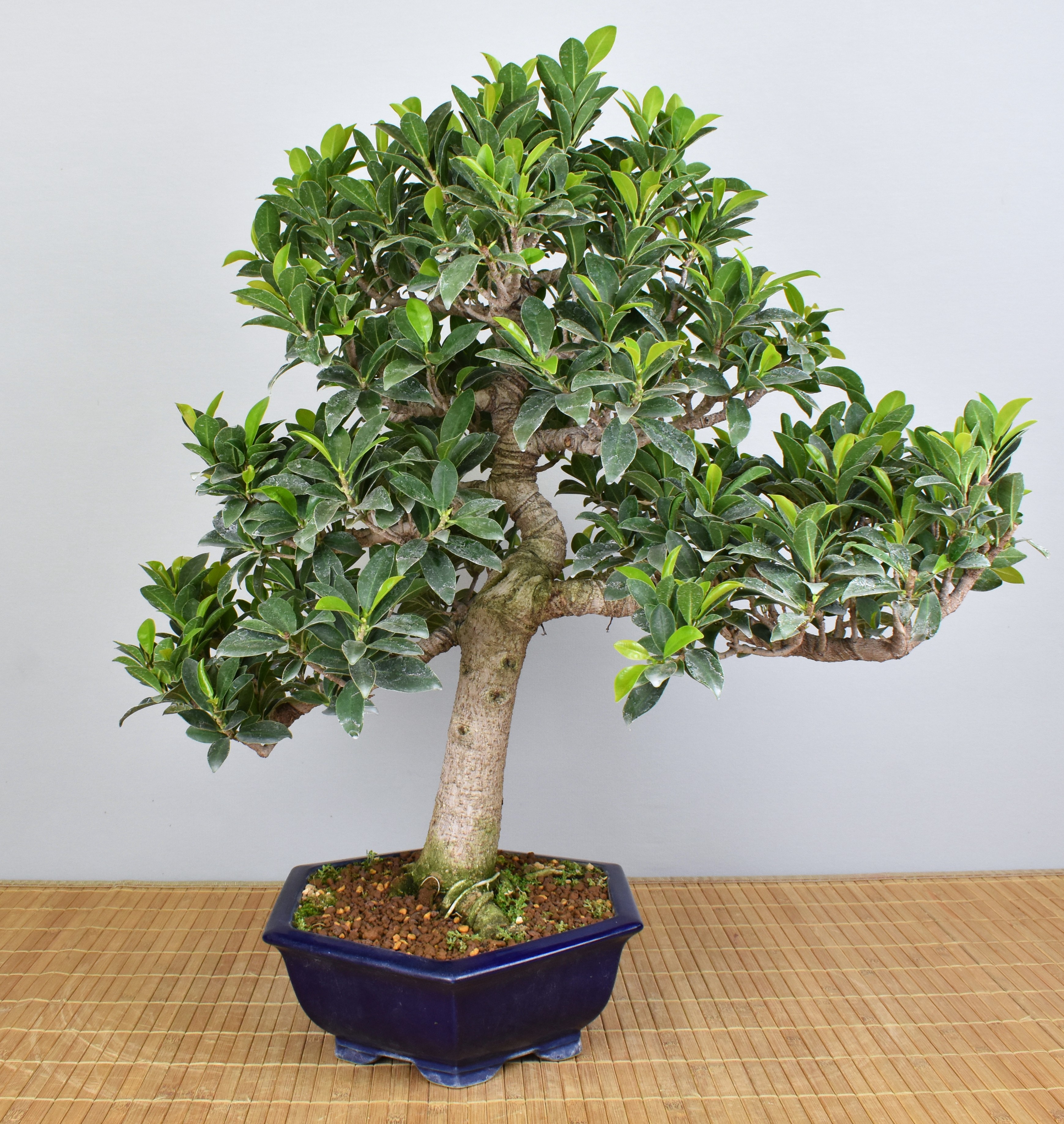 Der Baum ist im originalen Substrat (Lava) eingepflanzt und sollte beim nächsten Umtopfen in ein Gemisch aus Akadama, Lava, Kanuma eingepflanzt werden.